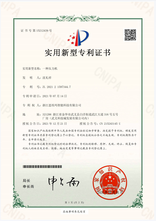 2019年 獲得含“齒輪壓裝機”鎖螺絲機”在內(nèi)的多項項國家發(fā)明專利