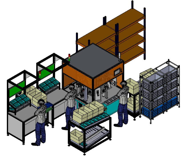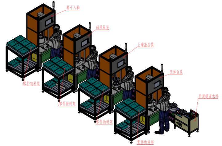 自動化專機是單臺的自動化設備,只能完成產品生產過程中的單一的某項工序,功能有限。在完成好某道工序后,已完成的半成品又需要采用人工方式傳遞給其他專機設備上繼續(xù)下一道的生產工序。完成整個生產需要一系列不同功能的專機和人工參與才能完成,這樣既降低了場地利用率,又增加了生產員工和設備,無形中也增加了生產成本,不利于產品效率和質量的提高。若將產品生產所需要的一系列不同的自動化專機按照生產工序的先后次序排列,則通過自動化輸送系統(tǒng)可將全部專機連接起來,即可省去專機之間的人工參與過程。